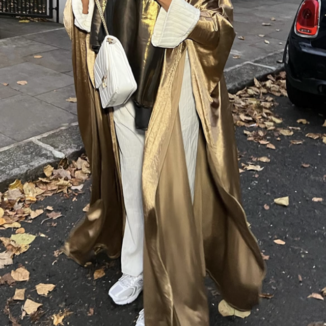 Our Velór Abaya in Éclípse captures timeless allure. The deep charcoal hue, the perfect autumn shade, evokes mystery and strength, enhanced by sumptuous velvet that drapes with effortless elegance.
