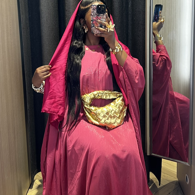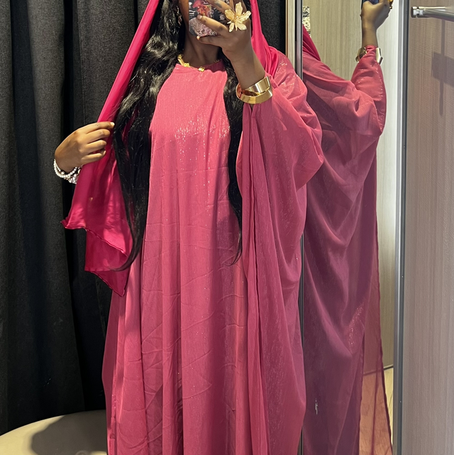 Our Crinkle Chiffon Abaya in Dark Pink embodies quiet femininity and modern allure. The deep rose hue shimmers with silver streaks that dance in the light, bringing an elegant, celebratory energy to your wardrobe.