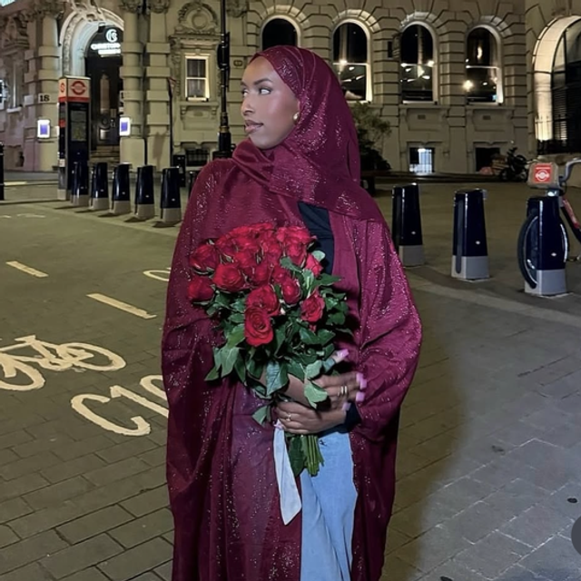 Our Crinkle Chiffon Abaya in burgundy captures the allure of timeless sophistication. The rich cherry hue glows softly as silver streaks glimmer through its delicate folds, reflecting depth and refinement with every movement.