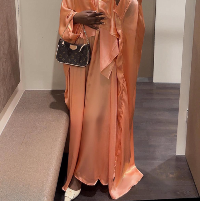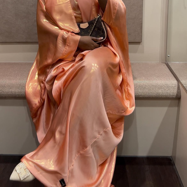 Our Glimmer Silk Abaya is a luxurious and elegant staple, designed to bring radiant flow and effortless sophistication.