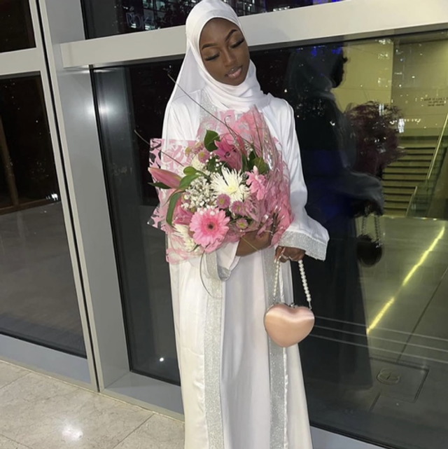White Silk Shimmer Abaya Set